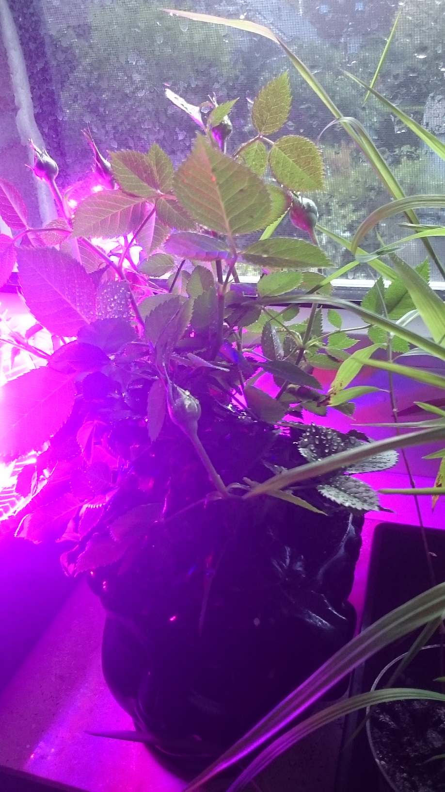 Da es inzwischen sparsame LED-Pflanzenlampen gibt, möchte ich meine Idee jetzt mit diesen in die Tat umsetzen. Allerdings geben diese Leuchten farbiges Licht ab, das anscheinend optimal ist für die Pflanzen.