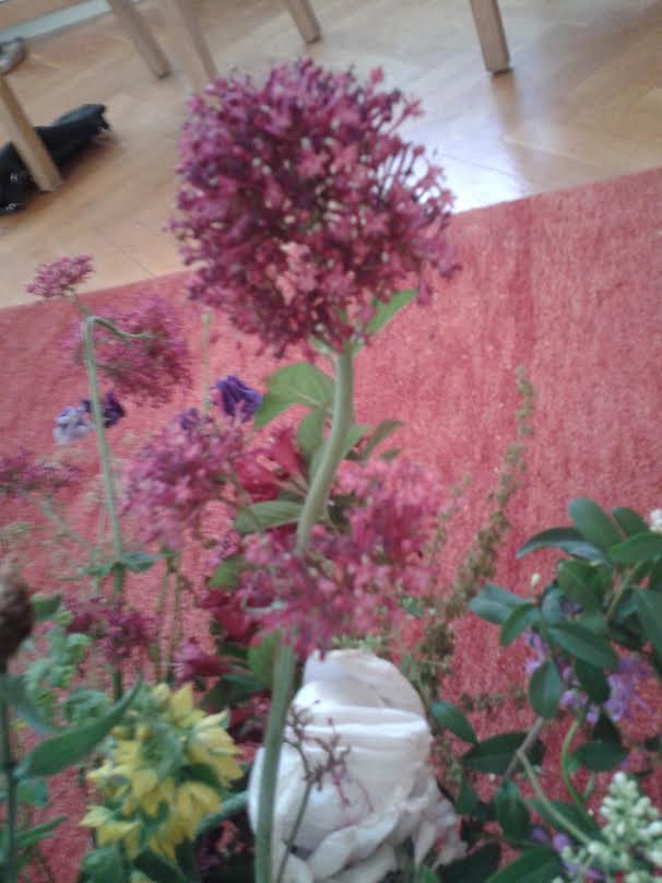 Okay, ich hab jetzt meine gedachte Pflanze gefunden. Ich vermute, das Ding im Gesteck ist eine neue Zuchtsorte der Monarda/Indianernessel.