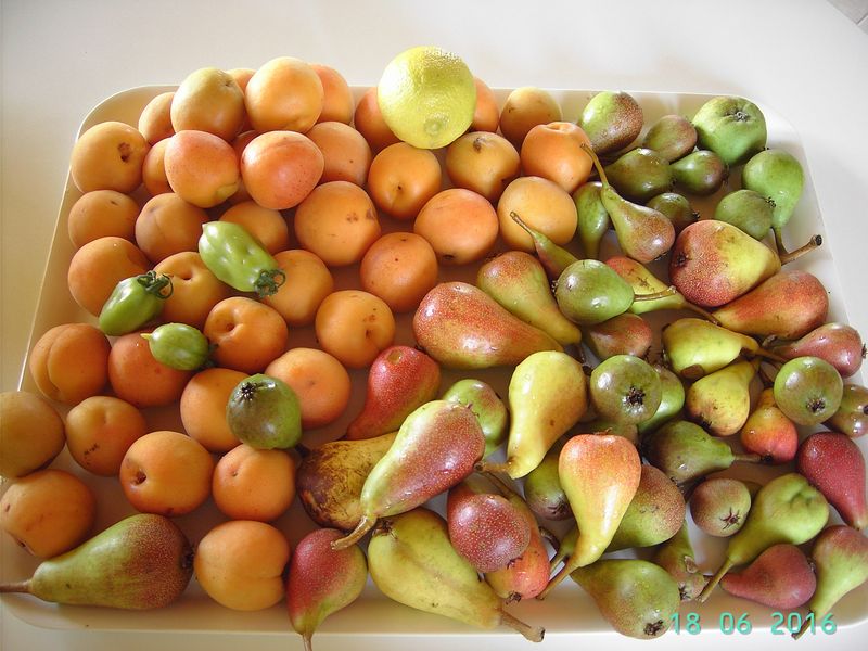 Die etwas "bunteren" Birnen wurde zusammen mit Aprikosen zu Marmelade verkocht.