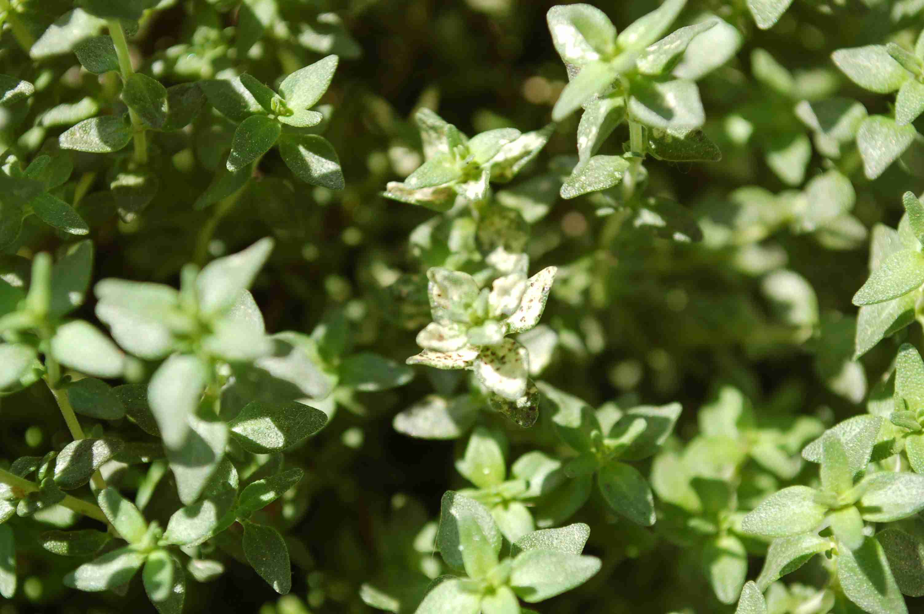 , sie werden braun und sterben ab. Auf dem Balkon hat ein Thymianplänzchen nun begonnen merkwürdig auszusehen (