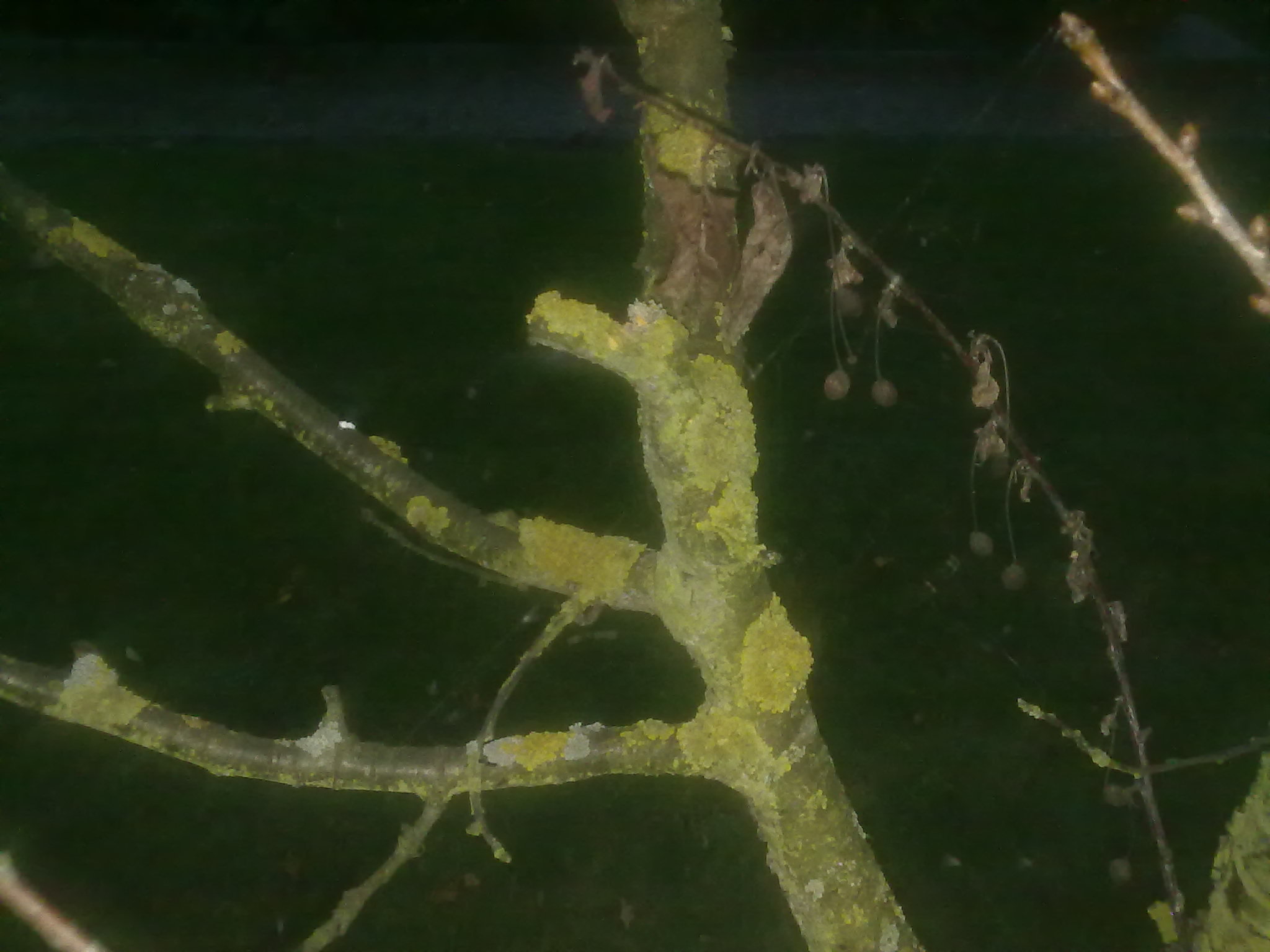 Es ist richtig, das es sich bei den Flecken um Flechten handelt (Zwei Arten, die Graue - Bartflechte - ist sehr empfindlich). Diese sind sogar als positiv anzusehen, solange sie nicht den ganzen Baum, einschließlich der Knospen überwuchern.