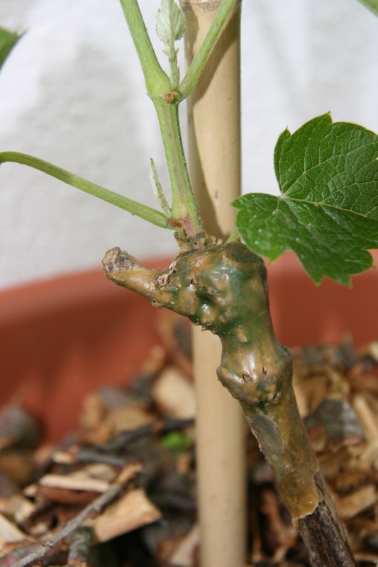 ich habe dieses Jahr eine Wurzelrebe gekauft und in eine Kübel gepflanzt. Die Rebe wurde als gepropfte Wurzelrebe (Solaris) verkauft. Sie hat auch schön ausgetrieben, nur habe ich sie mir heute mal genauer angeschaut: Der Austrieb kommt unter der Veredlungstelle heraus. Treibt da jetzt die Unterlage? Oder ist dieser kleine Zweig gar nicht die gepropfte Sorte, sondern ist der Knubbel darunter die Profpstelle?