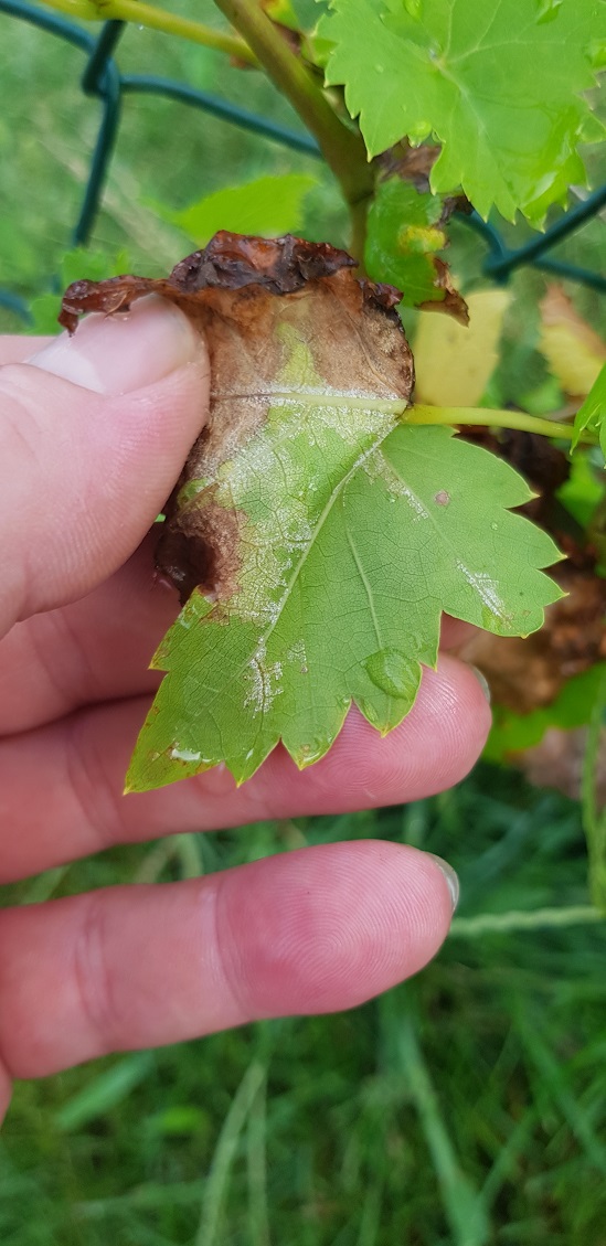 Ich stimme Hapy und Roccalana zu, dass die vertrockneten Blätter der Trauben vor allem einen Hitzeschaden und Wassermangel aufzeigen.