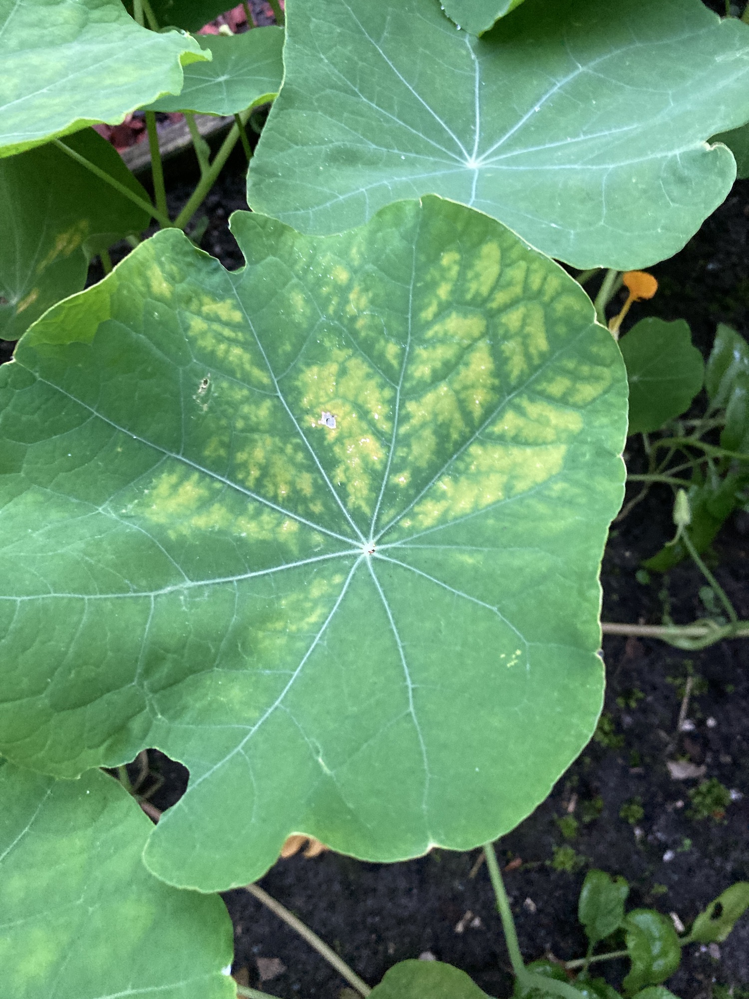 Hallo zusammen! Heute bei Sprossenbrokkoli, Spinat, Kapuzinerkresse, Schwarzkohl diese Verfärbungen der Blätter entdeckt — alle im selben Beet. Was meint ihr? Ist das ein Mosaikvirus oder doch eher nur Nährstoffmangel?