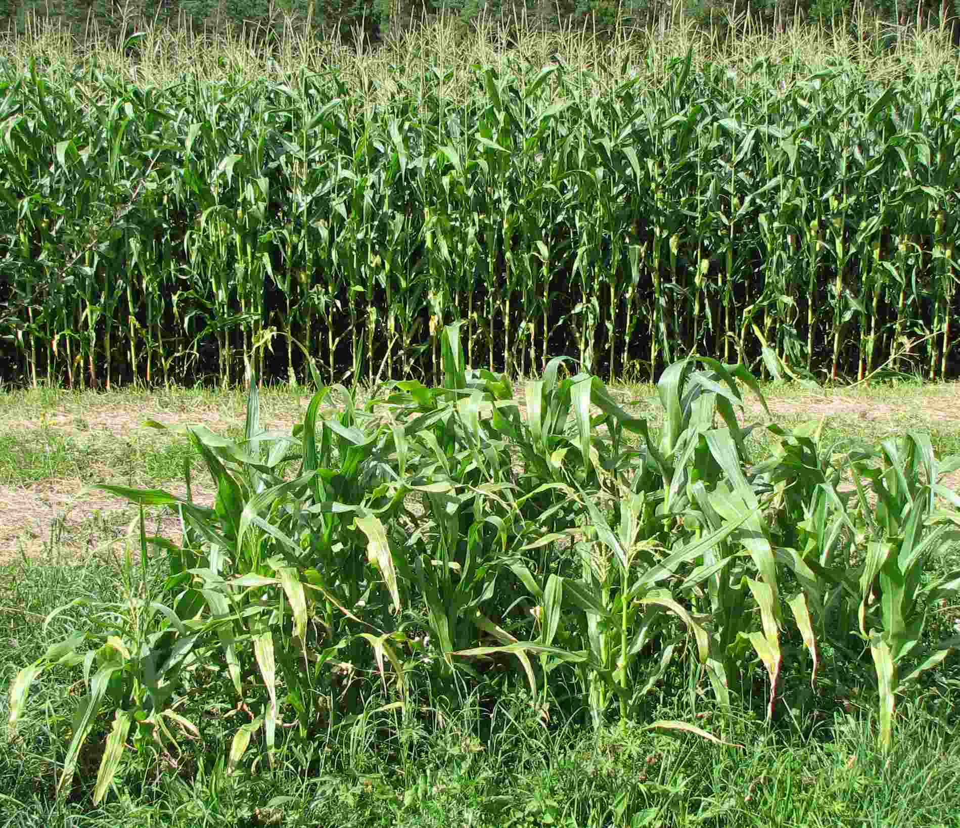 Ich glaube das trifft nur zu, wenn nicht genügend Nährstoffe zur Verfügung stehen. Mein Mais hat auch Beikräuter und es macht ihm überhaupt nichts aus. Die Beikräuter haben sowohl die Aufgabe des Informatinsaustauschs mit den Hauptpflanzen, als auch deren Gesundheit zu gewährleisten. Ich lasse zumindest immer ein paar von Ihnen stehen. Die Maissamen kommen aus demselben Topf.Auf dem Bild sieht es auch so aus, als hätte der Mais direkte Konkurrenz von Gräsern o.ä.: Das schwächst die Pflanzen zusätzlich.