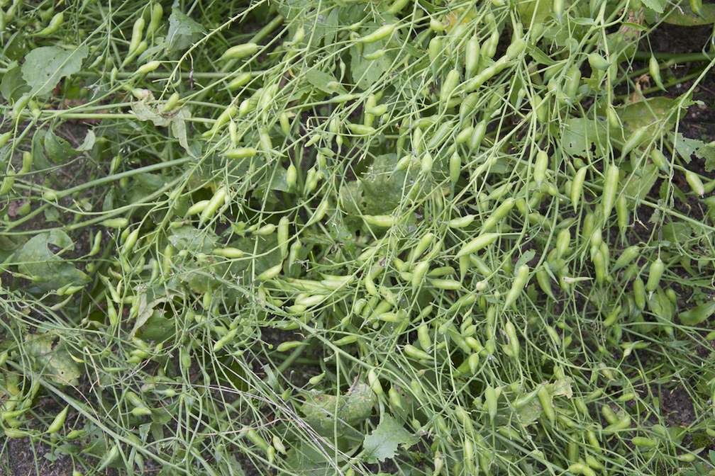 Ich vermute aber, dass es eine wilde Kreuzung zwischen dem oben genannten und Hederich/Ackerrettich oder auch Raphanus raphanistrum ist. Letzteres Kreuzblütler- Unkraut blüht jedenfalls in weiß, rosa und gelb. Auch die Schoten sind ähnlich. Wobei die vom Garten-Rettich den Fotos von Dir, Jürgen, ähnlicher sind.