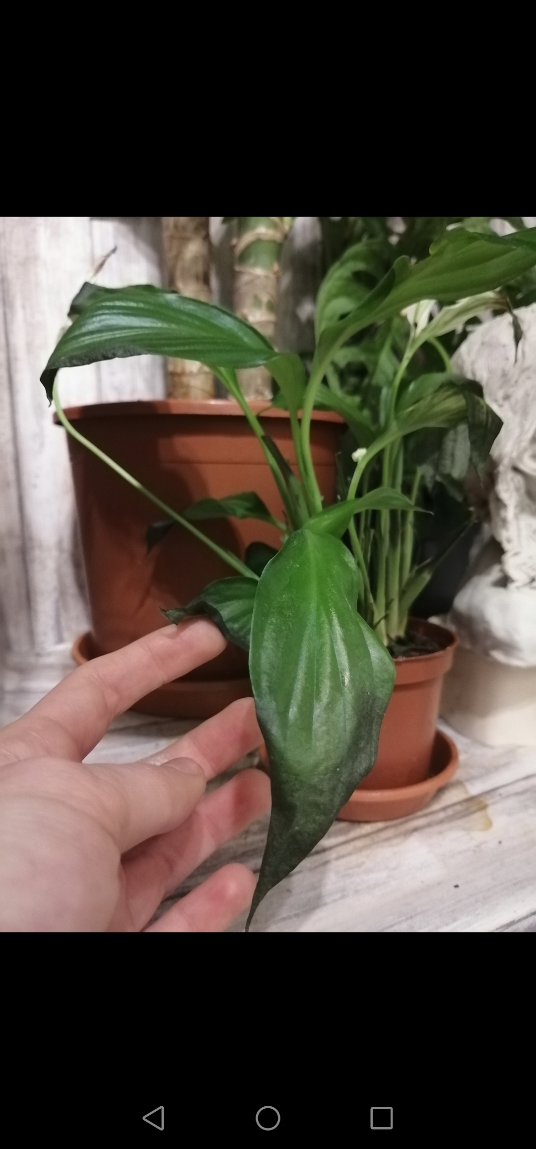 Mein Tipp: Das Spathiphyllum kannst Du da stehen lassen, aber nur, wenn Du sie mitsamt Untersetzer in eine große, flache Schale mit Wasser stellst, denn die Pflanze sollte von unten von aufsteigender, feuchter Luft umflossen sein. Als Kind der Tropen mag sie das! Der Untersetzer bleibt dabei trocken, und gießen tust Du nur- vielleicht 2x pro Woche- wenn die Erdoberfläche im Topf leicht abgetrocknet ist. Die jetzt kranken Blätter schneidest Du ab. Spathiphyllum mag feuchte Wärme. Sie kann im Winter auch geringfügig kühler stehen ( bis minimal 15 Grad), muss es aber nicht.