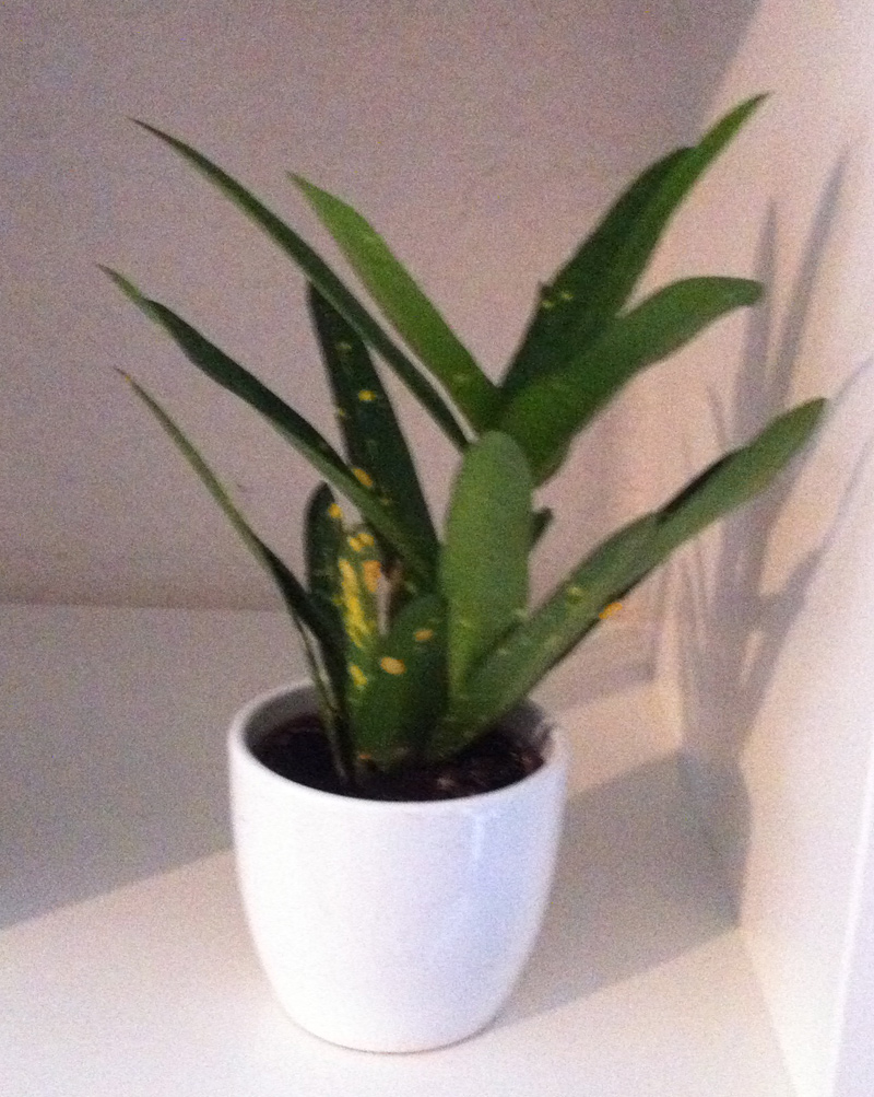 Ich war im Gartencenter und habe dort einfach die Pflanzen geholt, die mir gefallen habe. Außer eine davon (Sansevieria cylindrica) kann ich aber keine benennen und daher auch im Netz nicht nachsehen, was sie an Pflege brauchen. Das Traurige ist, dass sie leider alle relativ schattig stehen. Ich hoffe allerdings, dass es alles robuste Pflanzen sind. Dafür müsste ich allerdings wissen, wie sie heißen.