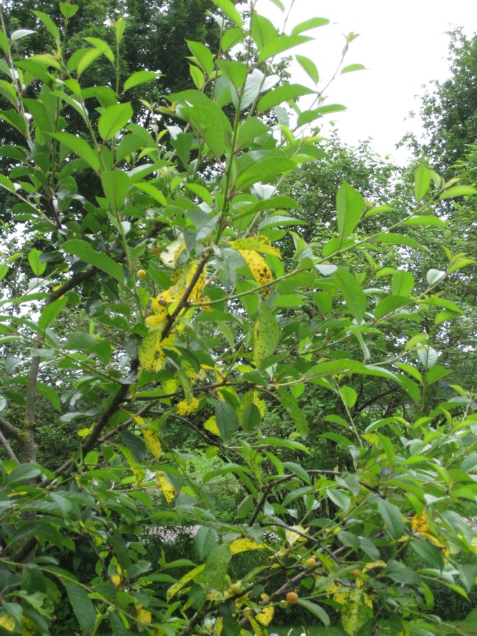 Nicht nur an meinen Kirschbäumen habe ich heuer einige gelbe Blätter. Betrifft u.a. auch Apfelbäume.