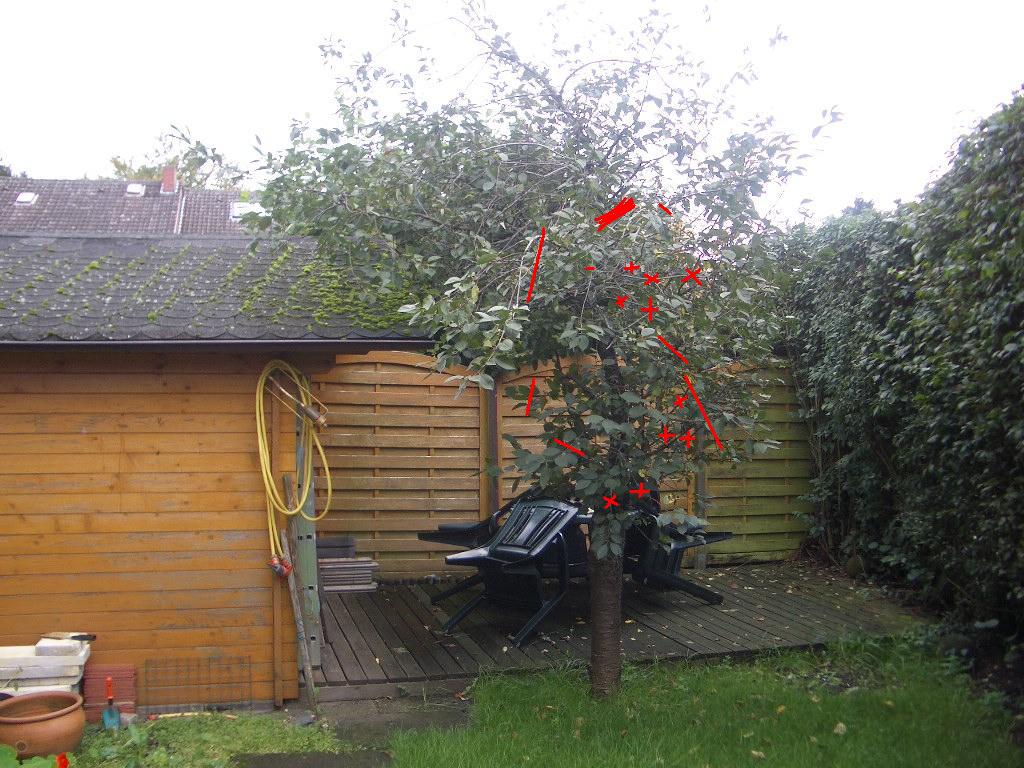 meine frage lautet nun: wie beschneide ich so einen baum am besten,damit er die nächsten jahre eine schöne form entwickelt, ohne ihn dabei zu sehr zu verletzen. auf die kirschen kann man auch eine weile verzichten.