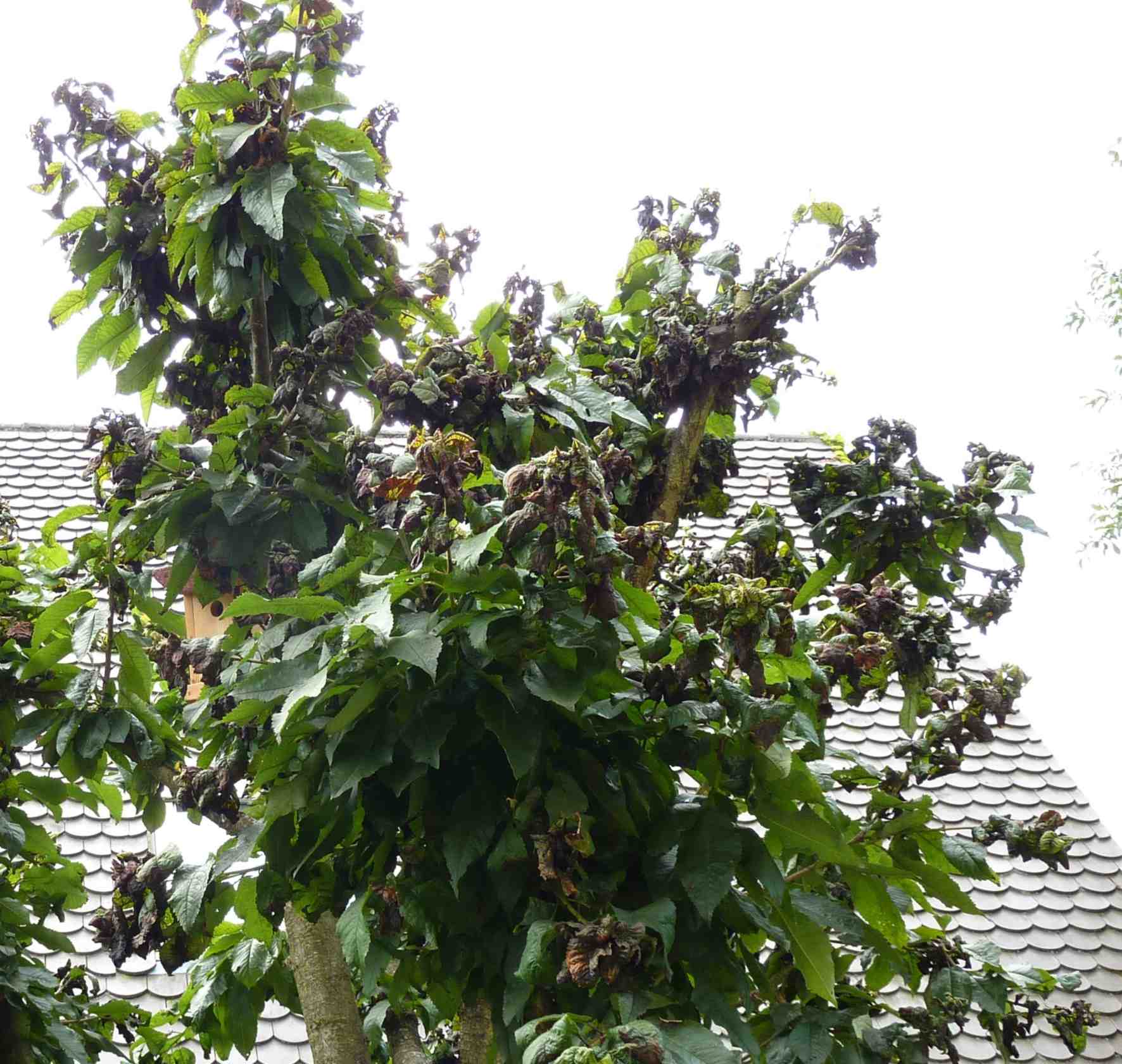 Nun sieht der Baum schlimm aus alle neuen Triebe sind so befallen