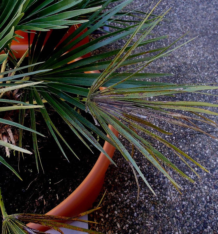 Ich habe 3 Chinesische Hanfpalmen die sich an den Wedeln deutlich verändert haben. Die erste Frage wäre natürlich was das ist und ob es sich von selbst bessern kann oder ob ich die befallenen Wedeln abschneide und hoffe ob gutes nachkommt ?? Glücklicherweise sind zwar einige Wedel aber nicht alle betroffen. Kann ich etwas tun um die gesunden Wedel gesund und kräftig zu erhalten ?? Ich habe festgestellt das über einen längeren Zeitraum manche Wedel Flecken bekommen wie auf den Bildern zu sehen ist ( vornehmlich auch die Spitzen und dann zunehmend rückwärts ) und dann lasch herunterhängen und irgendwann auch knicken. Gieße eher zurückhalten und den Topf halte ich in der Größe für angemessen. ???