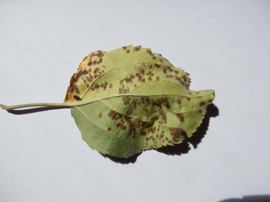 Etwas Ähnliches gilt für die Früchte: hier meine ich mich zu erinnern, dass manche Äpfel ähnliche (aber größere) Flecken wie die auf den Blättern hatten. Aber genau weiß ich auch das nicht mehr.