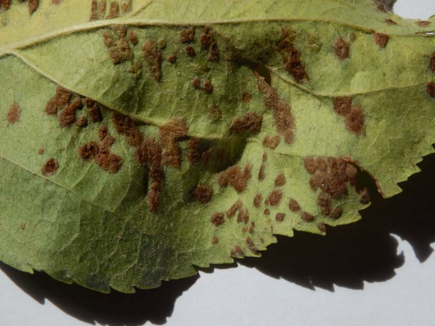und ich habe KEIN passendes Foto gefunden. Zu guter Letzt habe ich mich dann entschieden, mich der Sache durch "Ausschluss" zu nähern: Nur bei Rostpilzen hast Du oberseitig des Blattes diese Verfärbungen ( gelb, rötlichbraun, braun, schwarz) und unterseitig diese Pusteln. Gallen durch Milbenbefall habe ich deshalb zunächst ausgeschlossen, weil die meist oberseitig liegen. ABER, es gibt noch Optionen!