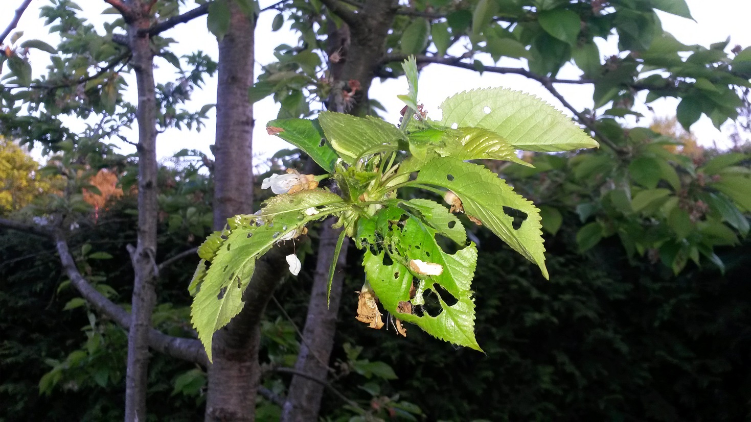 Im letzten Jahr hat der Baum tatsaechlich nicht eine einzige Frucht getragen, die Blaetter sahen aehnlich zerfressen aus wie jetzt (nur deutlich schlimmer).