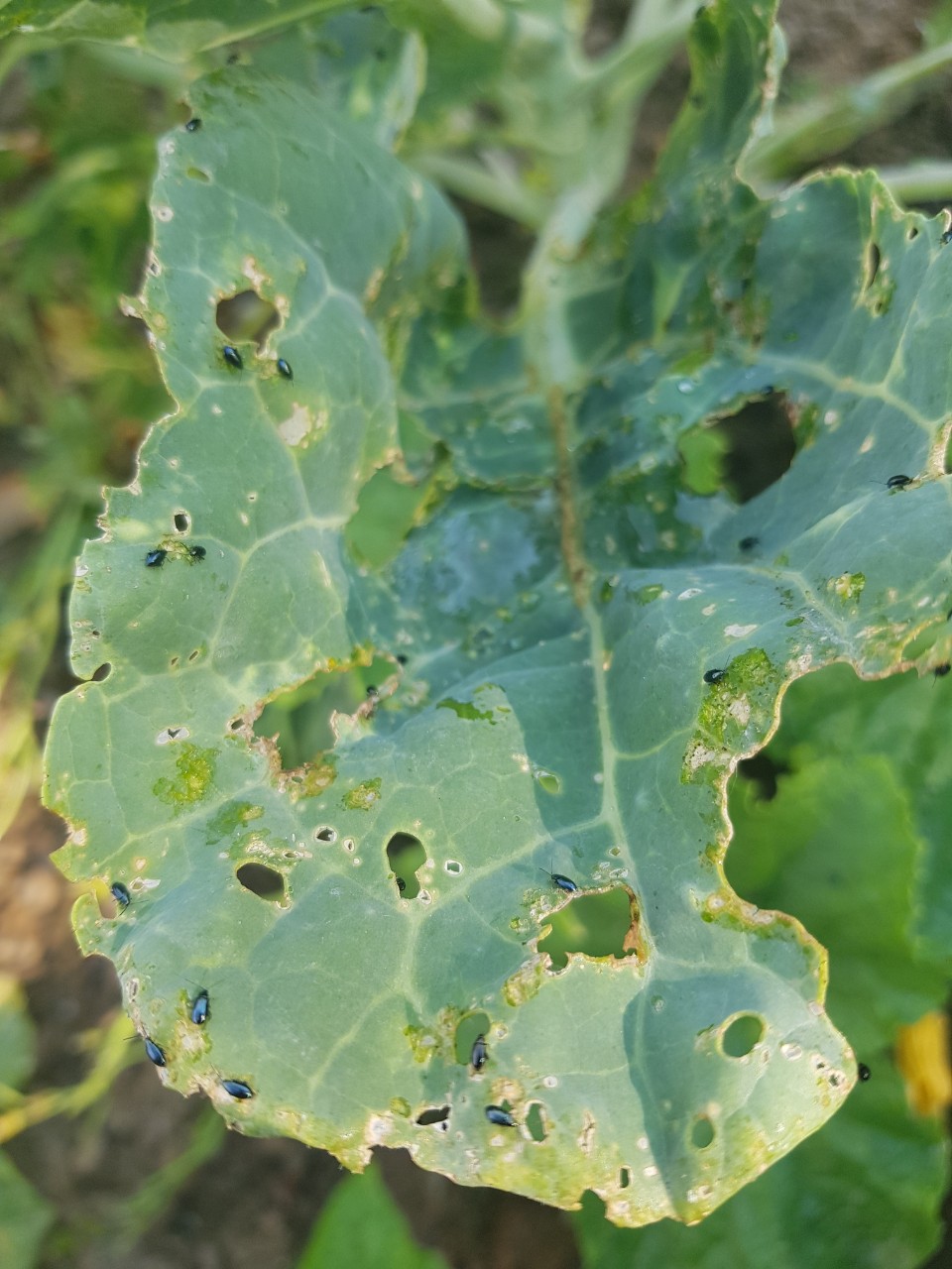 Und wenn bei mir nur Erdflöhe waren, dann hüpften sie jedenfalls nicht, und wenn bei mir nur Rapsglanzkäfer waren, fraßen meine aber keineswegs nur die Knospen oder die Pollen! Nein, ich hatte schwarze, kleine Käfer, die alles durchlöcherten, alles mögliche abfraßen, und die nicht hüpften.