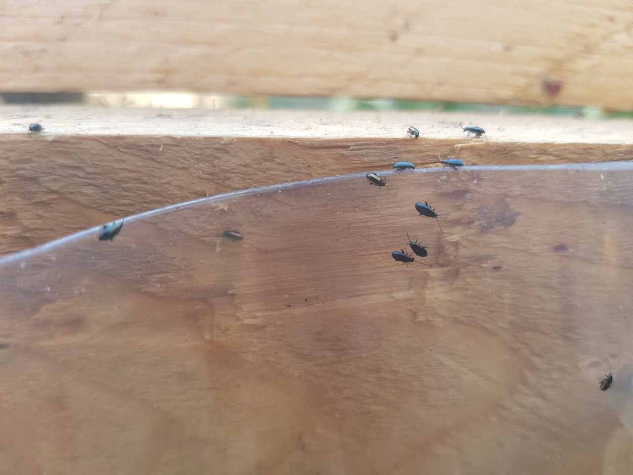 Mulch im Sommer gegen die Vermehrung kleiner schwarzer Käfer. Einfach -- und offenbar effektiv.