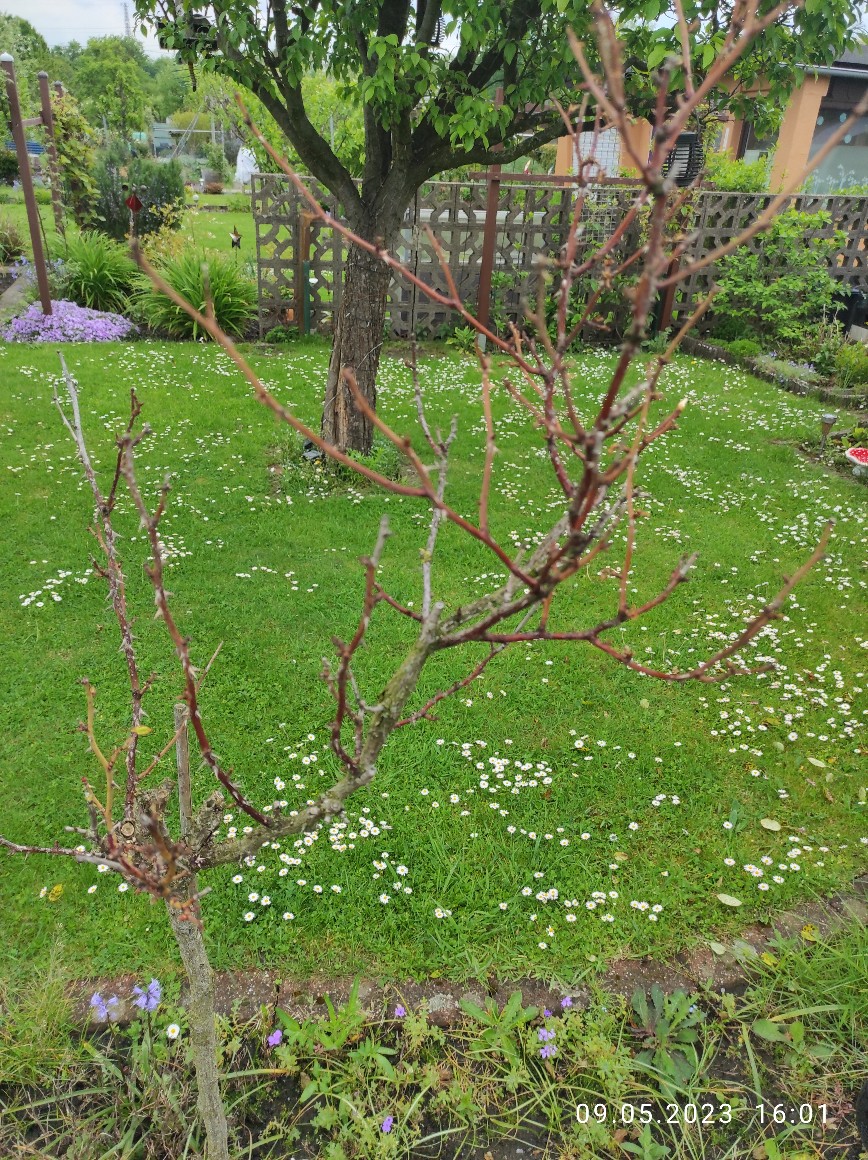 Die Rose ist seit 3 Jahren im Beet eingepflanzt und haben bisher immer ausgeschlagen und haben geblüht.