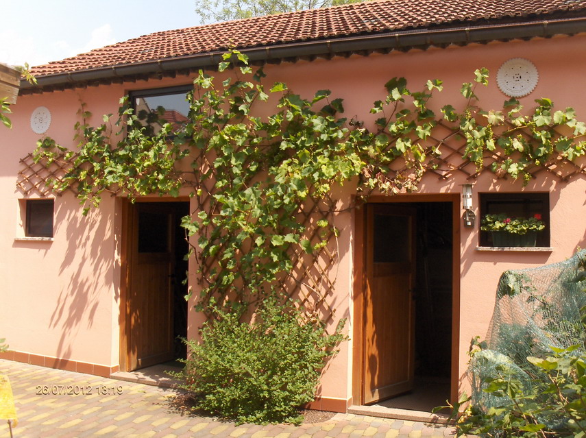 Hallo, ich bin neu hier im Forum und komme auch gleich mit einem Problem. Wir haben im Hof zwei Rebstocke, die in den vergangenen Jahren auch Wein getragen haben. Auch dieses Jahr hängen viele Trauben drann. Jetzt scheinen einige Zweige abzusterben bzw, sind schon abgestorben. Siehe Anhang. Der Boden ist mit Lavastrat (ca, 4-5cm Dicke) abgedeckt. Meine Frau ist der Ansicht, dass es am Javastrat liegt, da nach 3-4 Tagen Hitze der Boden dadurch ausgetrocknet ist, da durch das Lavastrat keine Feuchtigkeit an die Wurzeln kommen. Das Lavastrat liegt schon seit 2 Jahren. Kann die z.Zt. große Hitze von der Wand zurückstrahlen, die Sonne scheint ab ca. 11.00 Uhr bis ca. 16.00 uhr auf die Wand. Ich bin der Meinung, dass die Ursache eine andere ist, aber welche. Kann uns jemand helfen?